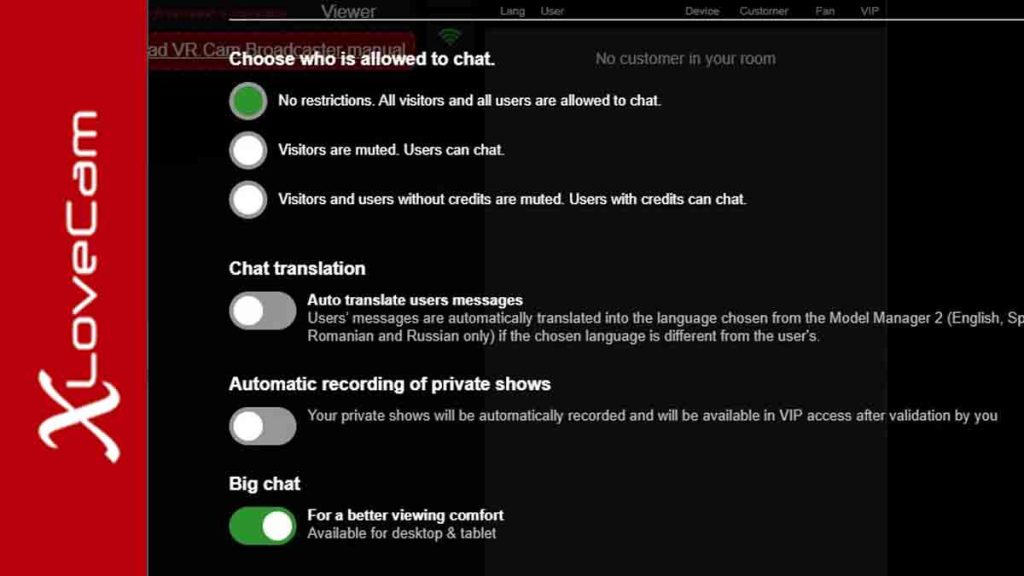 XLoveCam has rolled out an update to streamline chat management for models and studios. Broadcasters can now select who can participate in their chat, choosing from three options: allow all visitors and users, mute visitors while allowing users to chat, or restrict chat to users with credits.