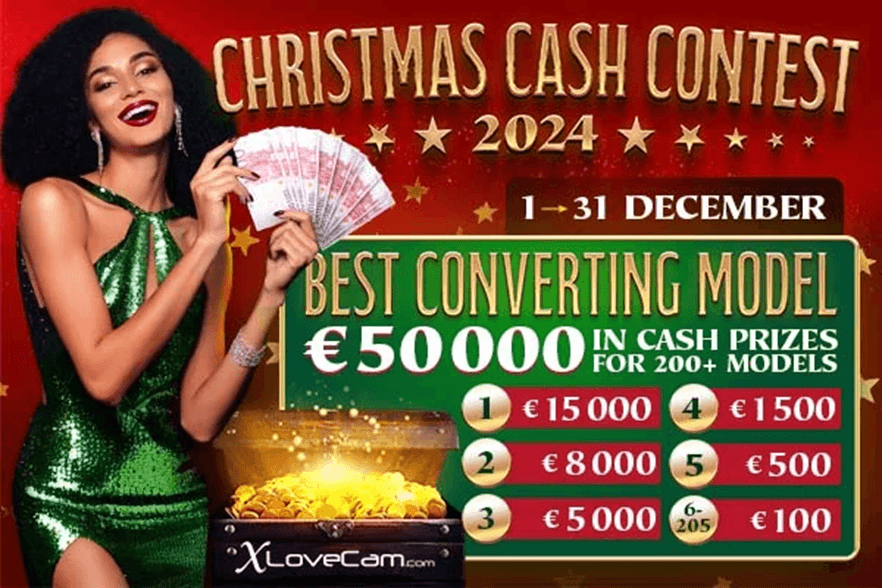 Willemstad, Curacao — The holiday season is upon us, and XloveCam.com is excited to announce its highly anticipated “Christmas 2024 Cash Contest”! Starting December 1st and running through December 31st, 2024, the contest will reward the top 205 cam models who excel at converting new visitors into paying users with an incredible €50,000 in cash prizes.
